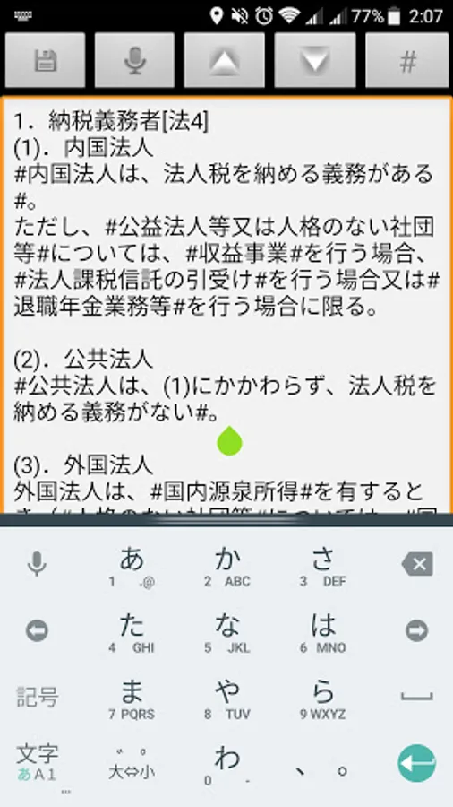 If you insert a sentence with a half-width sharp, the color of the characters in that part will change and you can hide it with the Menu key.
