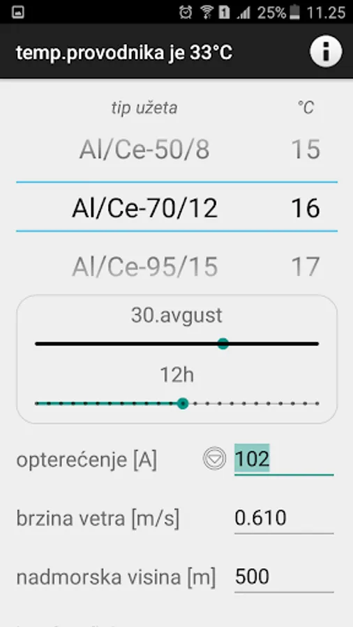 The mechanical calculation of the rope is well known and there are numerous software tools that perform it. The purpose of this program - android application, is to enable engineers to directly execute the mechanical budget while they are still on the ground, along with their operational activities on taking the route of the transmission line. Therefore, the need to return to the office is eliminated to access the desktop computer, the CAD program and specialized software add-ons for mechanical calculations and drawing of sprockets. The concept solution is checked on the spot and it controls the compliance of technical regulations. Just a smart phone or tablet is enough, which is practically always at hand.