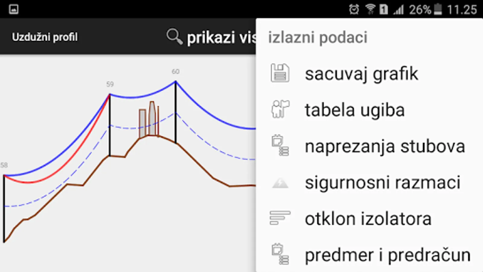 This reduces the time required to carry out work tasks related to checking the safety altitudes of overhead conductors, controlling the stresses and defects in crossing the transmission line, and the like. During the recording of the subject situation in the field (measuring distance, angle, station, etc.), the user of this application can simultaneously enter the parameters of the mechanical calculation in it, and, based on the results, on the spot, determine whether, for example, satisfied safety height above an object, or when crossing two transmission lines, or whether the insertion of a new pillar in the existing water route will solve the problem of crossing the transmission line over a residential building, and the like. By doing this, the user of the application directly in the field checks whether a particular solution meets the rules and conditions in advance, and, depending on that, adopts the solution or continues shooting the terrain for a new one.