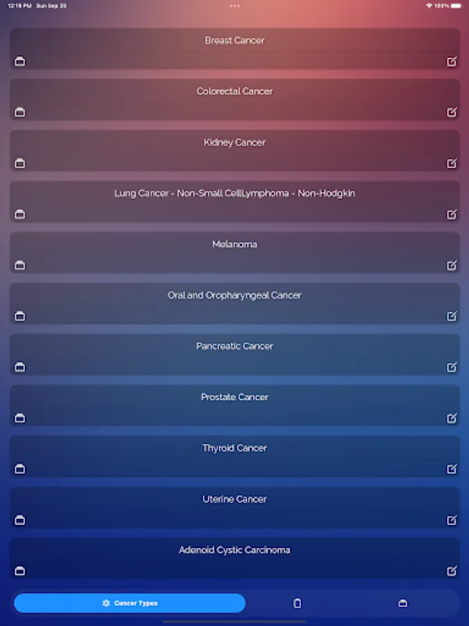 Learn and capture notes on different cancer types. A very useful app for students and professionals.