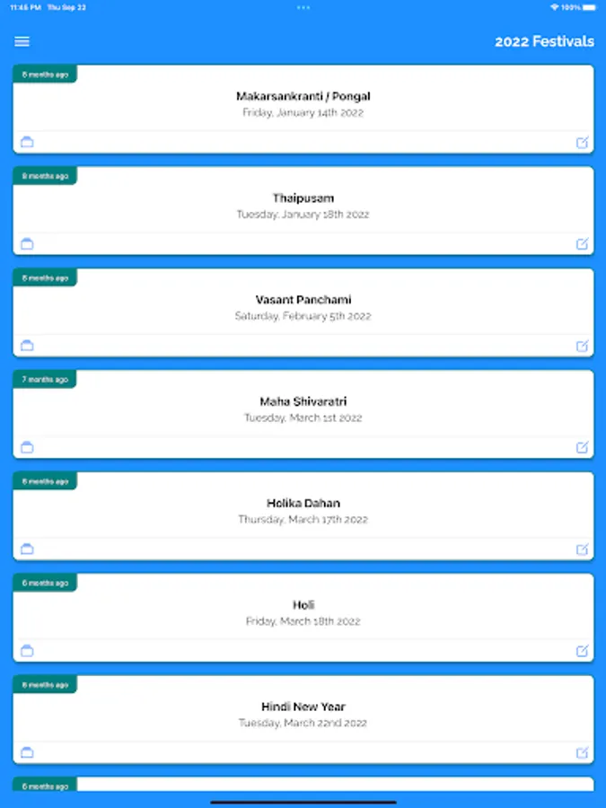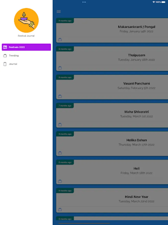 This handy app allows users to track the hindu festivals. Users can capture journal of events during these festivals. These jounals can be any eventful moments, todo items, planning related tasks etc.