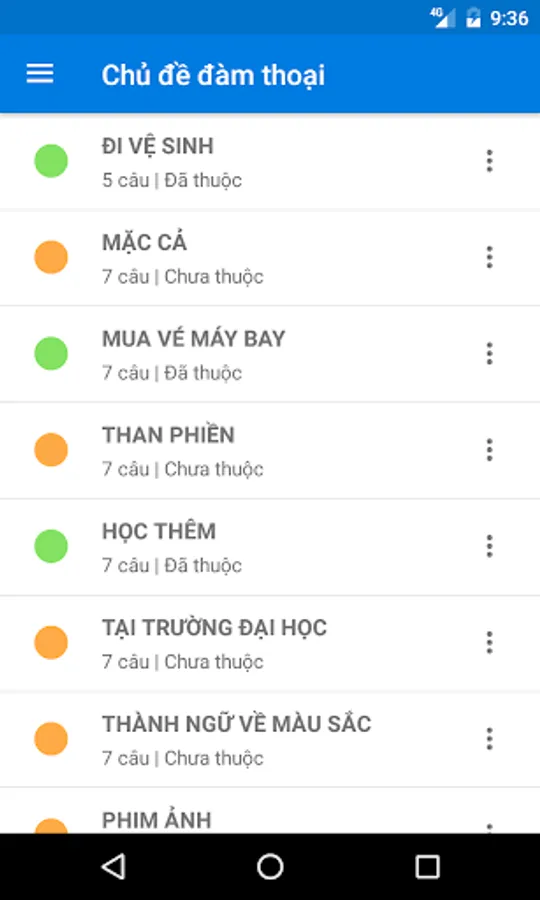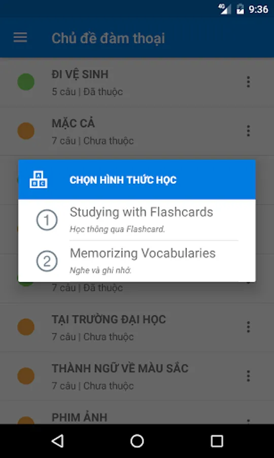 ** The application will help you learn conversation phrases by different ways, such as: