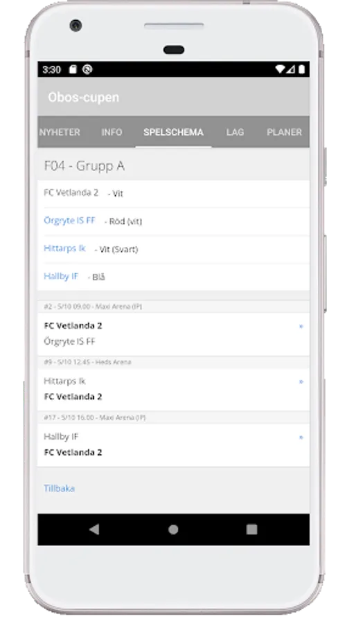 If you want to follow one or more specific teams, you can easily favorite these for quick access to the team's schedule and results.