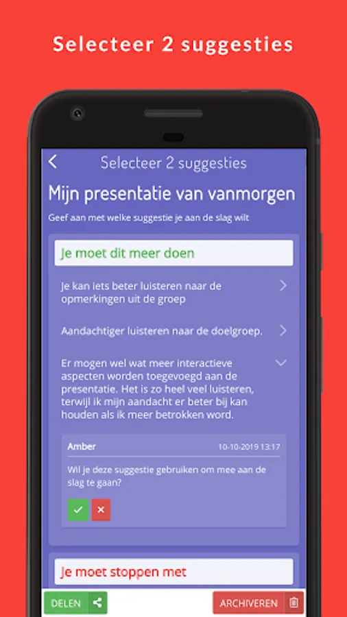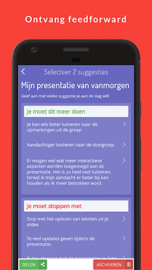 With EFFI you can easily and quickly request feedforward and suggestions to your environment. Invite respondents through a channel of your choice. You will immediately receive feedforward that you can get started with!