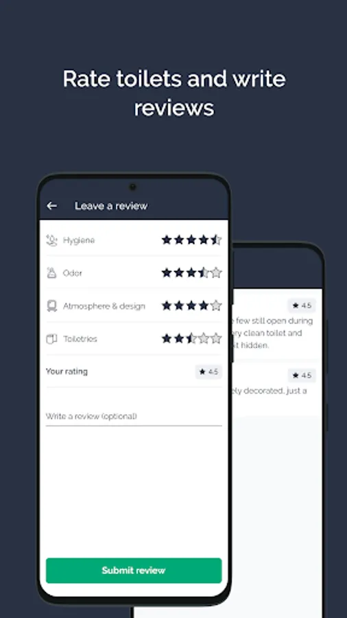• Reviews of the toilet by previous visitors – presented in stars and an average rating