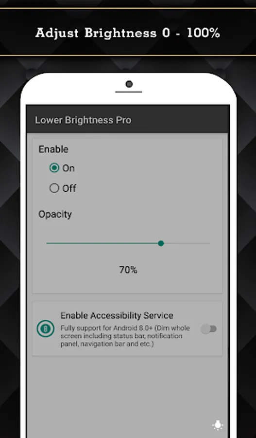- Easy to use. Just enable and set the percent of brightness level (0-100%)