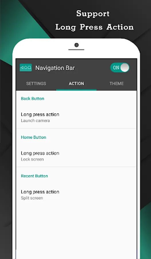 - Long press action for back, home, recent buttons. (See below for list of actions)