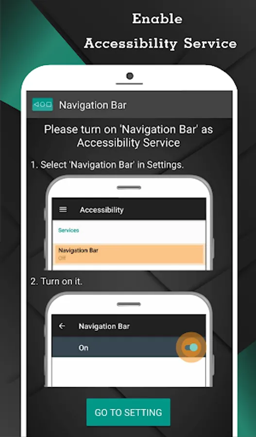Navigation Bar for Android requires accessibility service permission in order to enable core functionality.