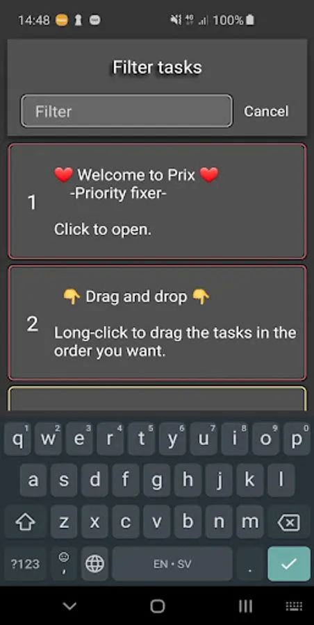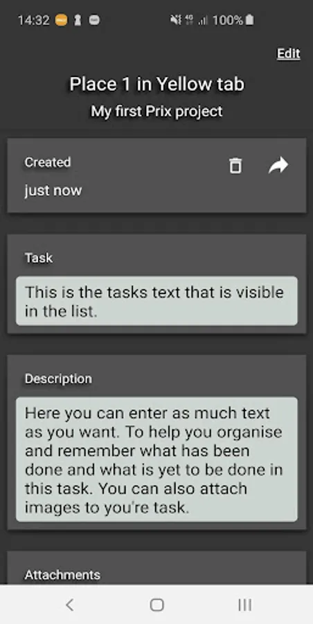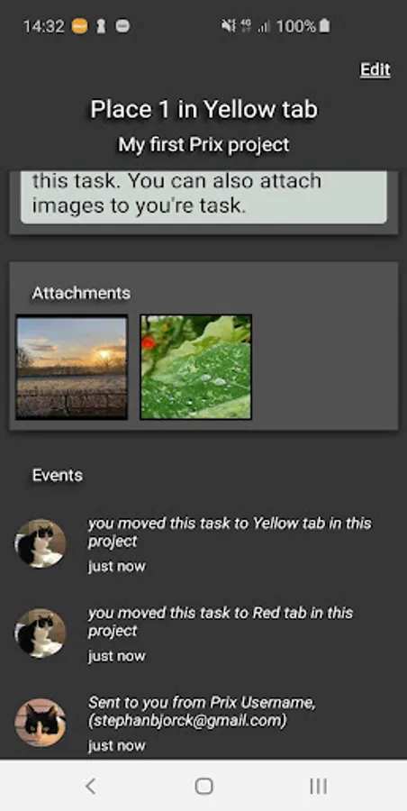 -Send a task to another Prix user. From your inbox you can manage tasks sent to you. There you can choose which project the task should end up in, or throw it in the trash.