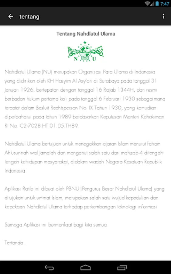 Applications Ratib Al-Athos offerings NU to facilitate the reading of Ratib