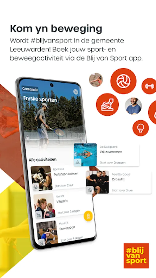 The starting point of your movement in the municipality of Leeuwarden! Book your sports or exercise activity via the Blij van Sport app.