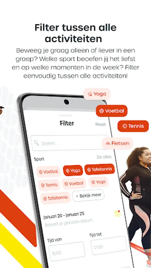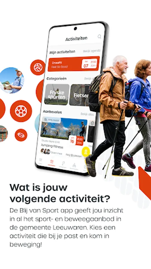 With the app you can clearly view all the sports and exercise offer in the municipality of Leeuwarden. For example, you can book a personal training, a training at the sports club in the area or participate in a walking group. Choose the activity that suits you and reserve your spot.