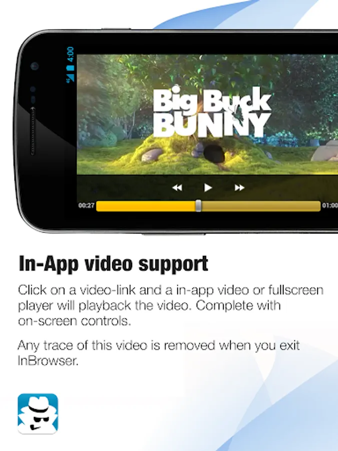 Click on a video-link and an in-app video player will play the video. Any trace of this is removed when you exit the app.