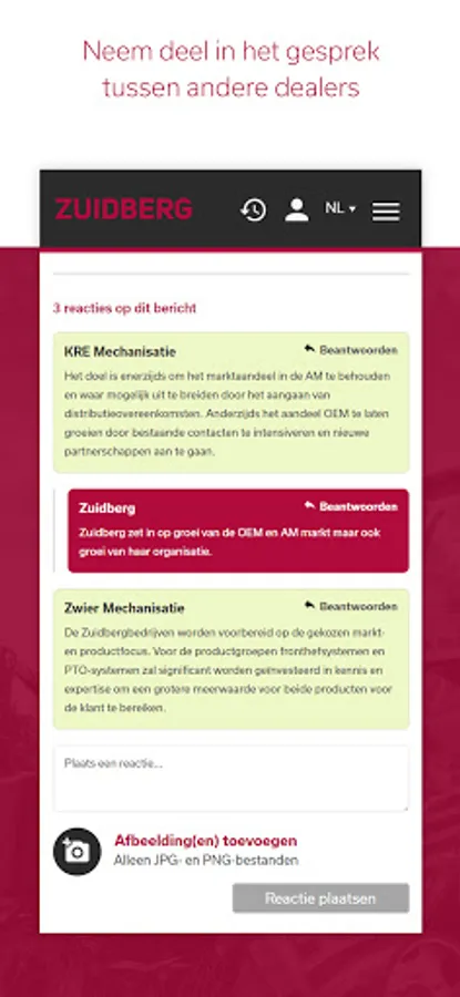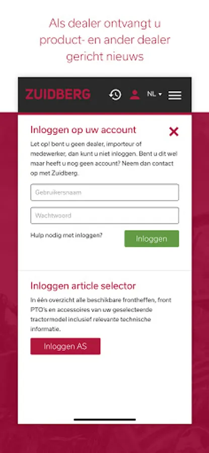 Zuidberg is increasing targeted communication with its dealer network and other stakeholders. For that reason, the website has been adapted and an APP has been developed with which targeted communication can be done. Dealers are given the opportunity to respond to a news item. Accept the push notifications from the Zuidberg APP for this.