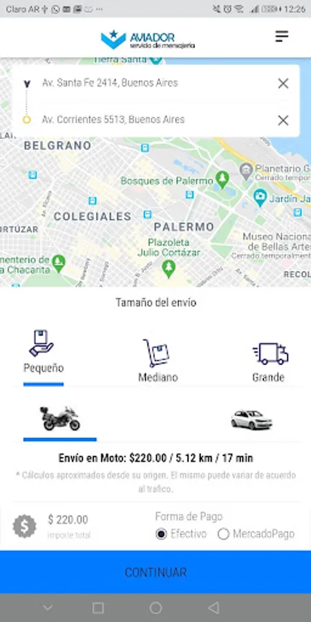 Aviator allows you to quote shipping in real time in a simpler and faster way. We collect at your point of origin and deliver to your destination without delay. We carry out Procedures, sending Documents, Checks, Products and Packages in Motorcycles and Cars.