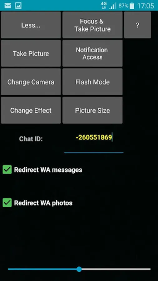 The second function is where the app will redirect all the messages sent to your WA to your Telegram Messenger account, although the app's name is 'AutoCam'. The app will stay active silently in the background although the app is closed. Make sure you give all the permissions needed by the app.