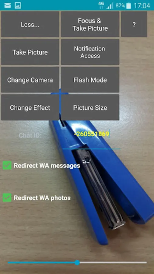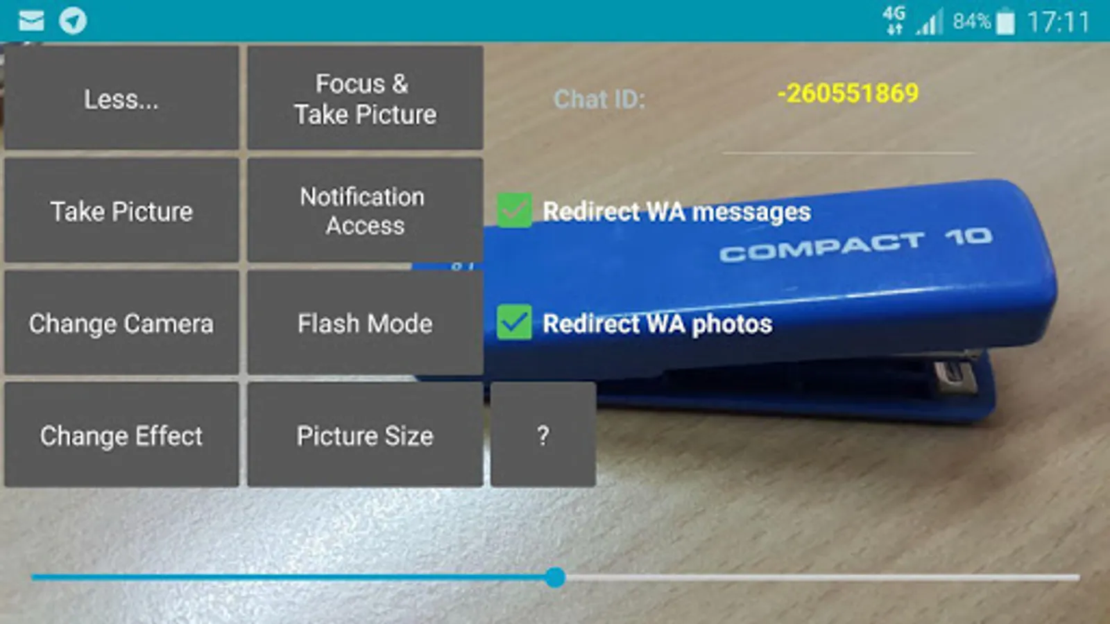 9. Click on 'More…' button again. Click Take Picture button and see the result on your Telegram Messenger app.