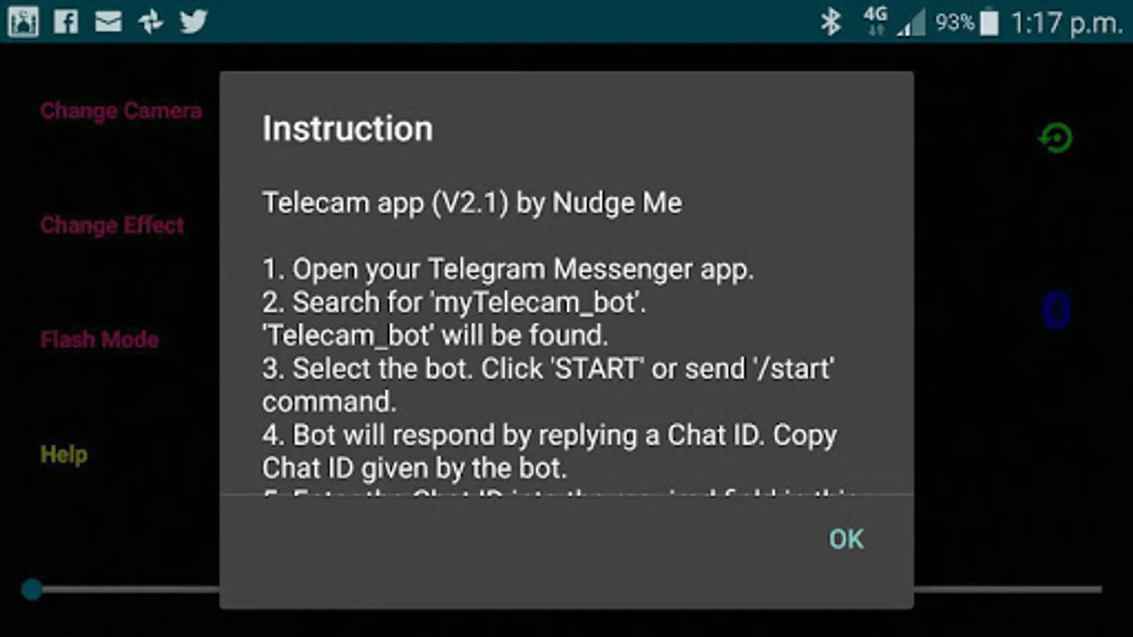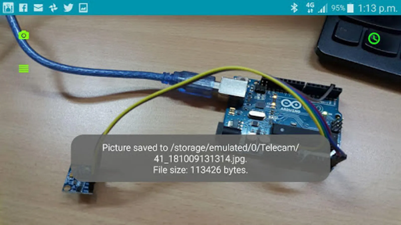 9. Click on the Camera icon. Check your Telegram Messenger to see the photo which the Telecam app has sent.