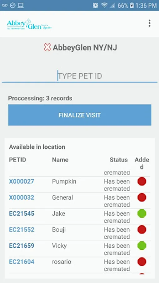 AbbeyGlen's Field Service Representatives (FSR) Pet Tracking mobile application.