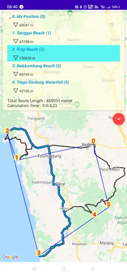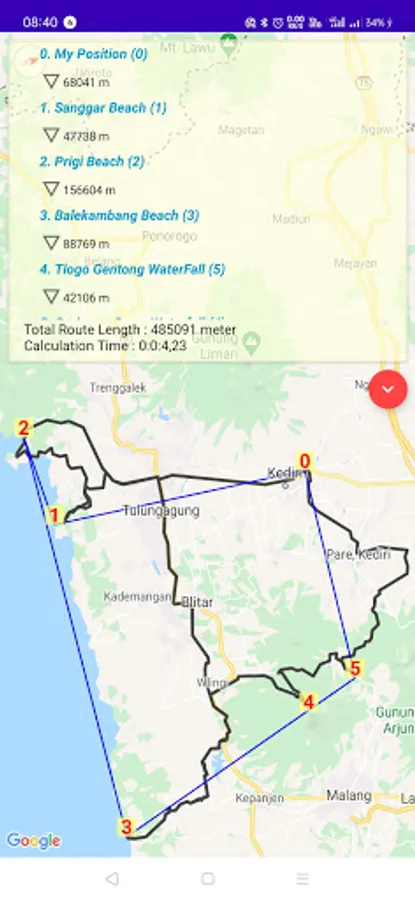 "ClercPSO-TSP GPS Route Finder" is an implementation of the "Particle Swarm Optimization" algorithm using the Clerc method which is useful to help find circular routes to visit the places you want to go so it can make your trip faster and more efficient