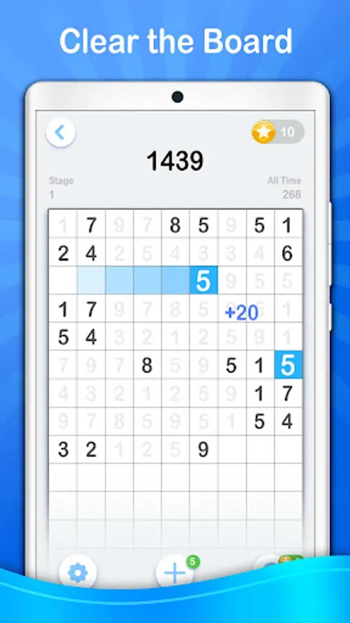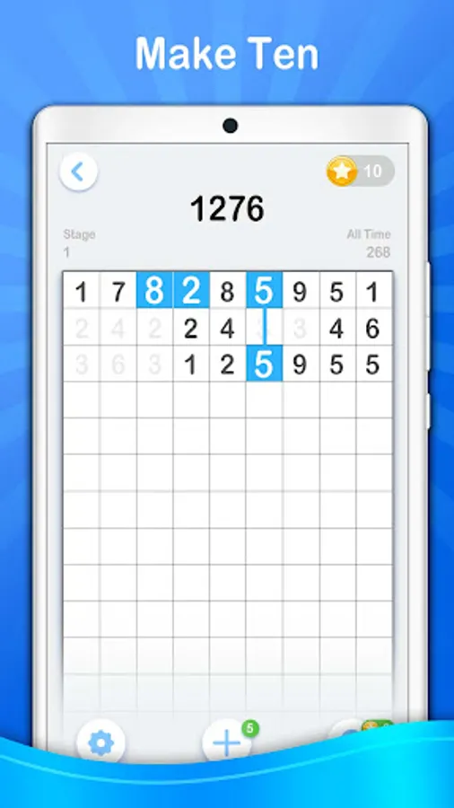 The rules of the game are very simple, clear all numbers on the game board by removing pairs of numbers that are equal or add up to 10. You can connect pairs in adjacent horizontal, vertical and diagonal cells, or at the end of one row and the beginning of the next row. When you run out of steps, you can add an extra row at the bottom with the remaining numbers. If you get stuck, there are hints to speed up your progress.