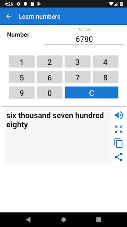 Convert any numbers into english words. A power ful tool to convert numbers, with pronounciation, zoom, copying and sharing option.