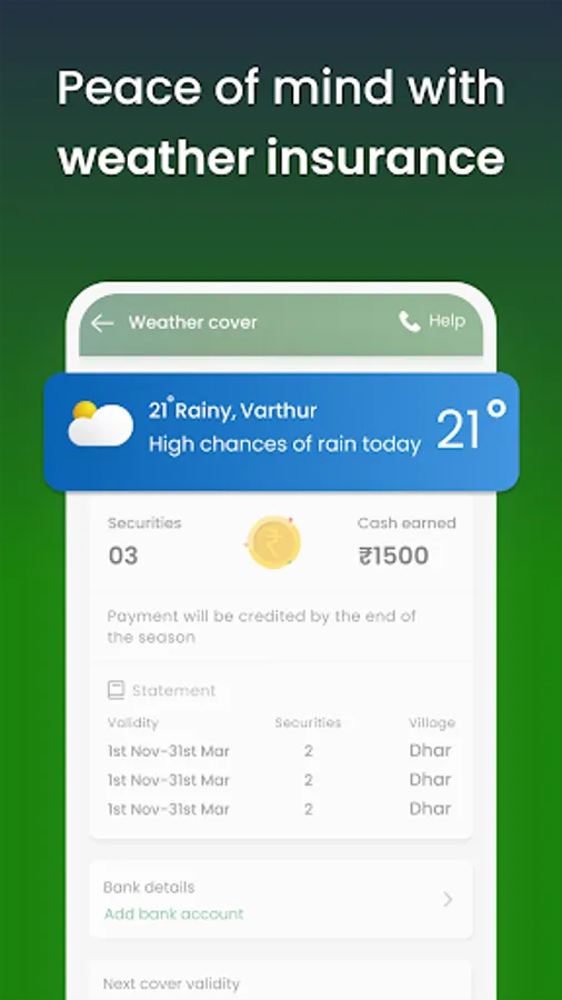 Weather kavach☔- Hamare weather kavach se aap apne khet ko be-mausam ki barish se bacha sakte hai.