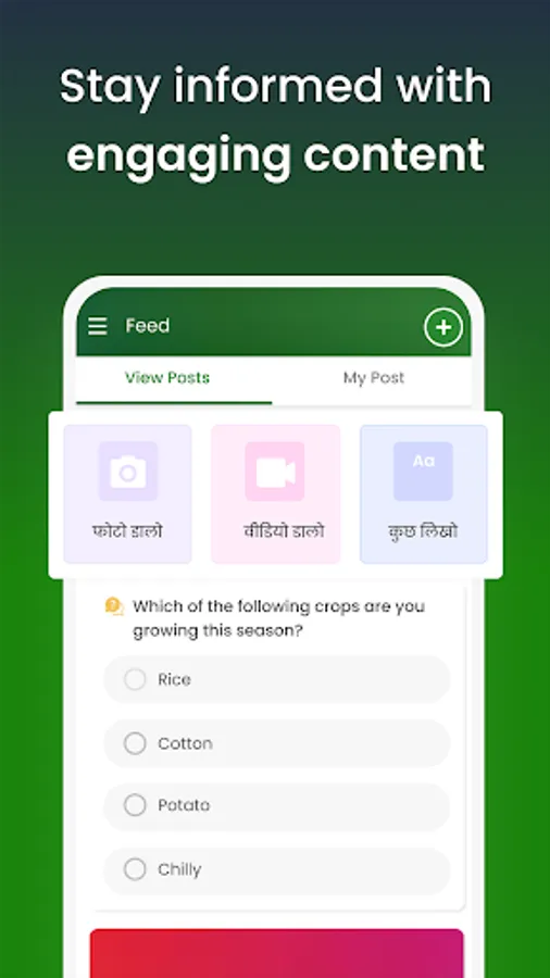 Ab aap apnay fasal sambandith samasyayen seedhe krishi visheshagya (crop doctor) se salaah le sakta hai jo aap ki fasal ki samasya ke karan aur samadhan bata sakta hain. Aap ko keval hamare app mein fasal ki photo upload karni hai aur humare Crop Doctor aapko faslo se sambandhit sabhi samasya par salaah pardaan karenge.