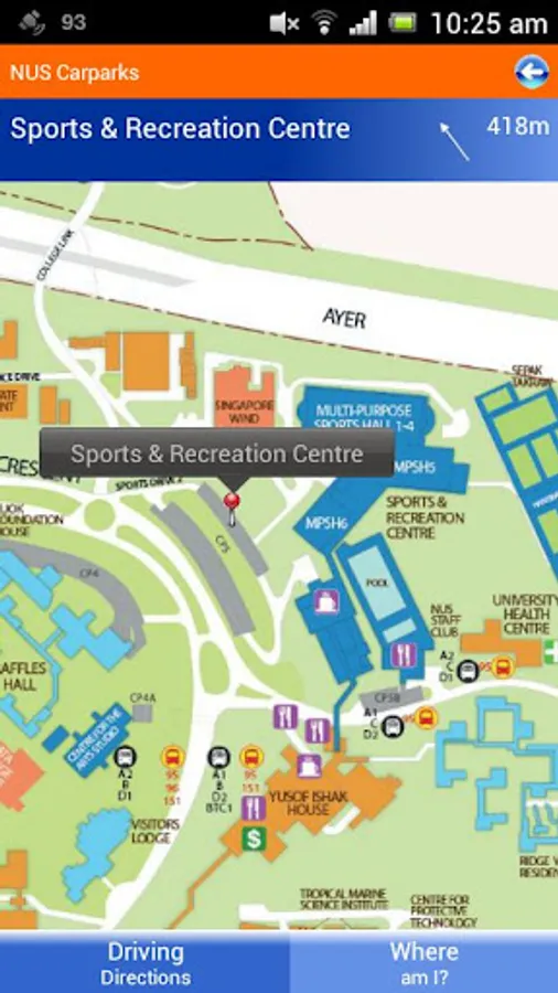 • List of carparks in the campus with location maps as well as real time information on the number of parking lots available.
