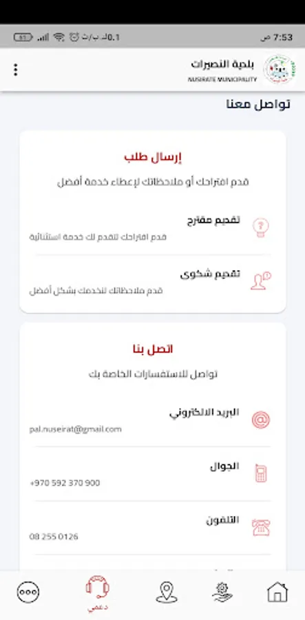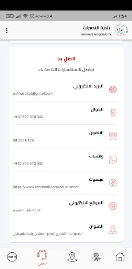 The Nuseirat Municipality application provides a range of services to the residents of Nuseirat; To facilitate communication with the municipality and enable them to access information and services of interest to them, and to interact with the municipality.