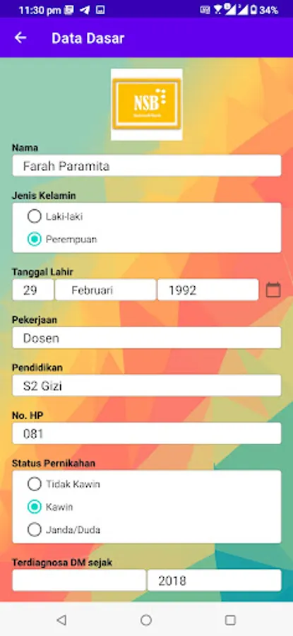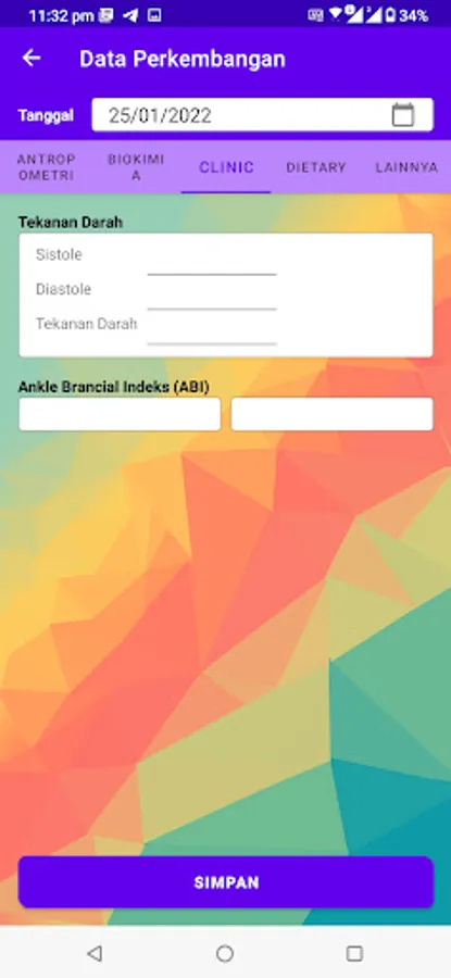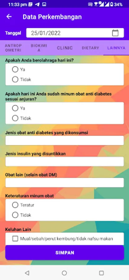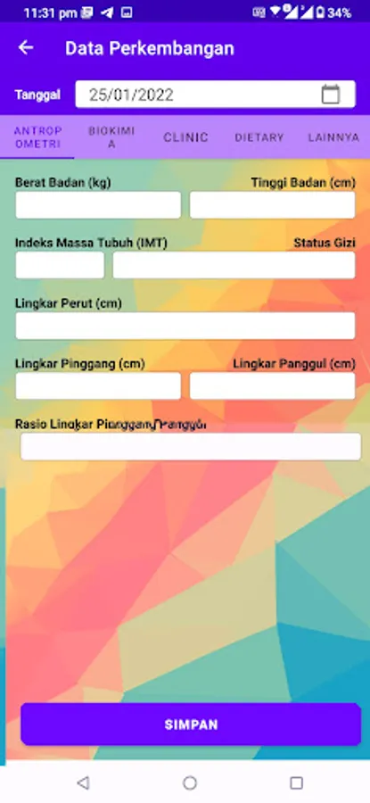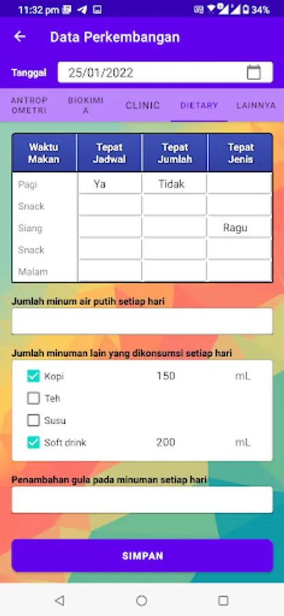Aplikasi ini merupakan hasil kerjasama dengan dosen Ilmu Gizi Kesehatan Universitas Brawijaya dan ditujukan untuk memantau perkembangan pasien.