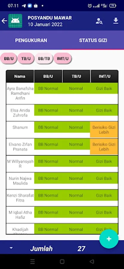 Aplikasi ini dibuat dengan tujuan dapat memudahkan pemantauan gizi bayi dan balita di wilayah kerja puskesmas atau pada desa-desa. Dengan aplikasi ini, dapat membantu mendeteksi secara dini gangguan pertumbuhan anak dan dapat membantu bidan desa/kepala desa/kader/ahli gizi dsb dalam memantau sejauh mana pertumbuhan gizi balita di wilayah kerjanya (Desa)