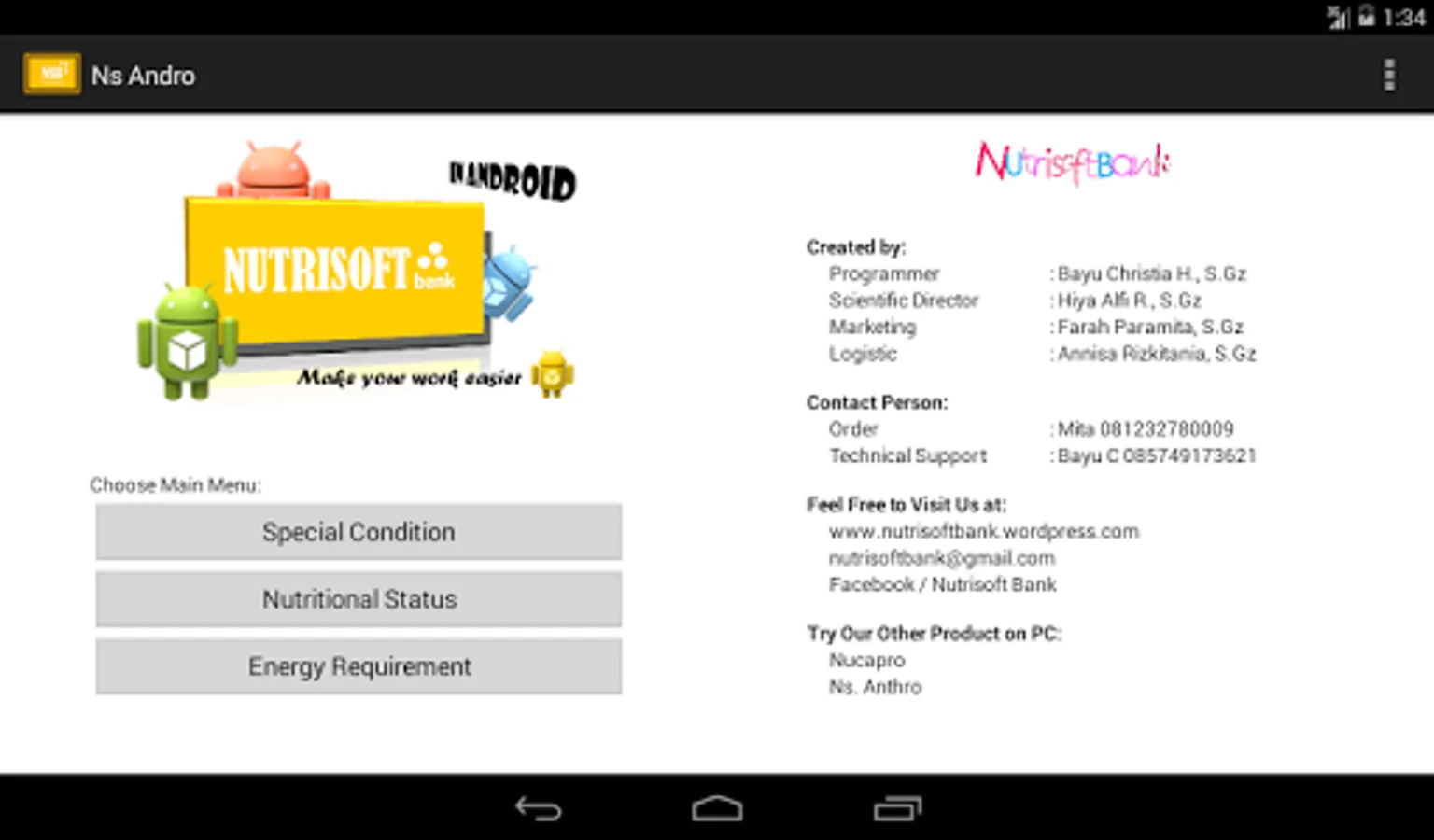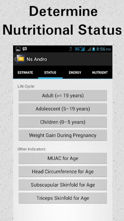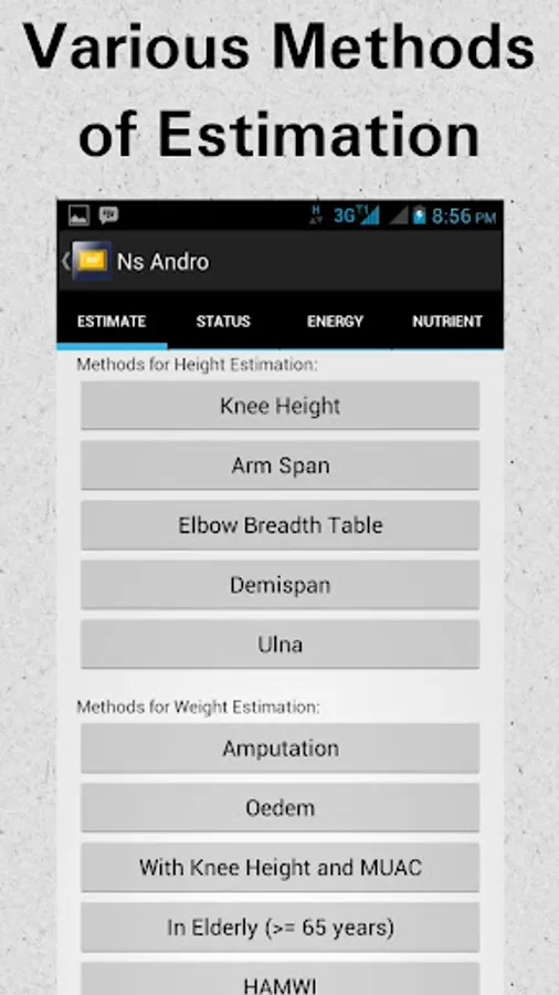 NS Andro will help you calculating your nutritional status and nutritional requirement's patient