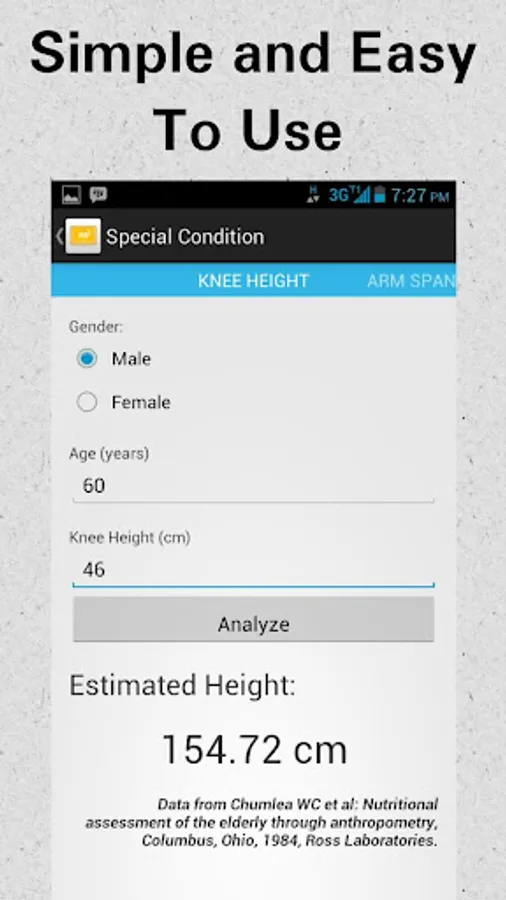 a. knee height, arm span, elbow breadth, demispan and ulna calculation