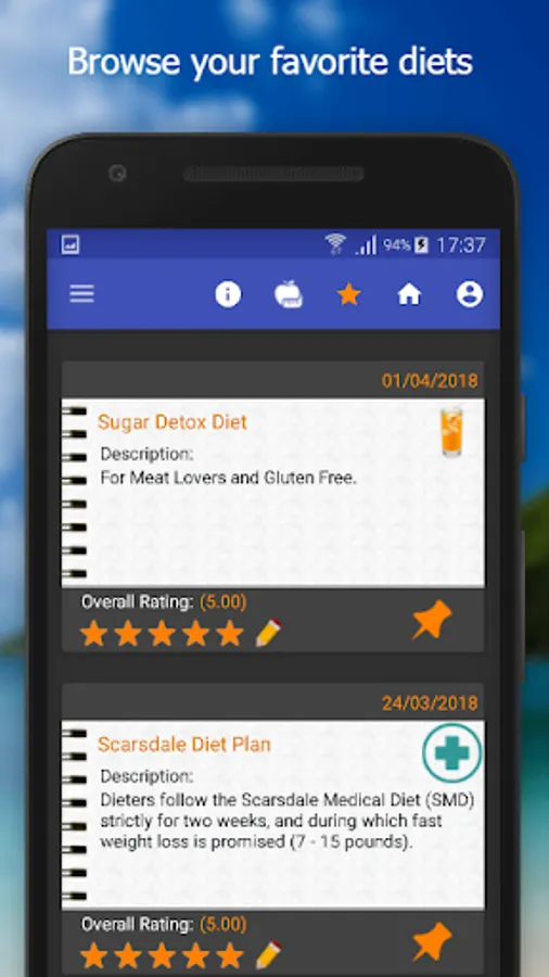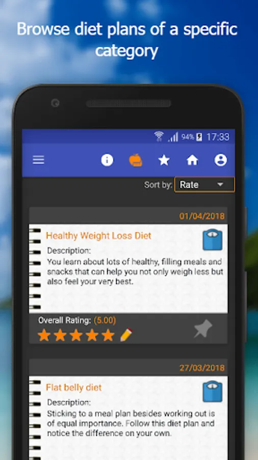 Our nutrition diets are divided into six groups of categories that are: Vegetarian, Athlete, Weight Control, Detox, Crash and Medical diets. Diet plans are published from users once they are approved. And the best thing is that each diet gives you clear overview day by day of what you need to eat, so you can organize in a better way.