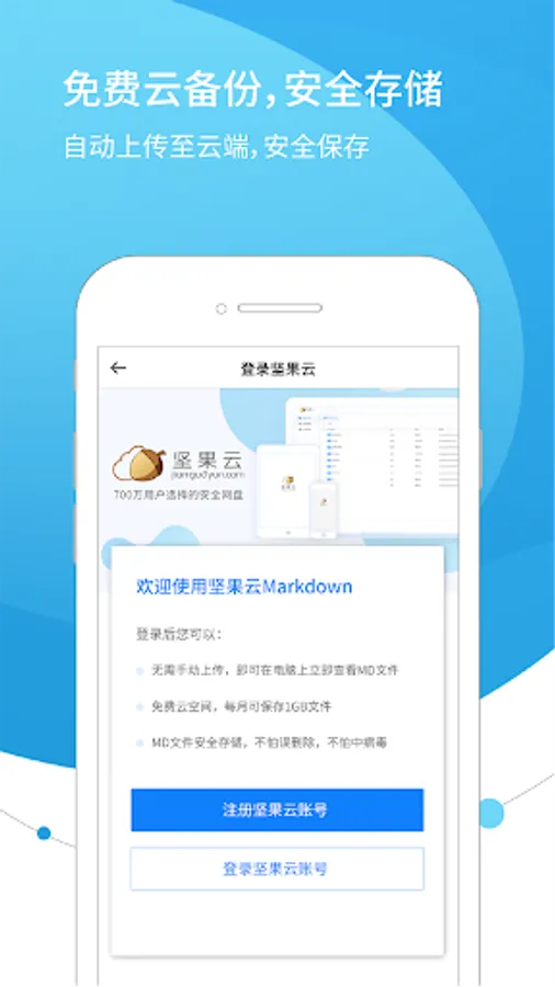 Nut Cloud Markdown is a Markdown text editor that supports Markdown syntax, simple interface, no built-in advertising, free and multi-platform ready to use. You can enjoy an immersive writing experience on the Nut Cloud Markdown. You can also upload 1GB of documents to the Nut Cloud for free every month to efficiently manage your documents through cloud storage.