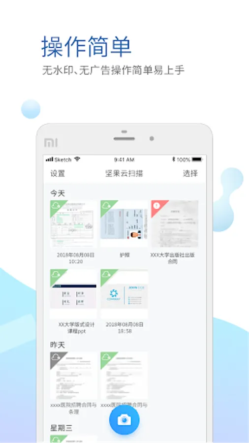 Nuts cloud scanning is a non-built-in advertising, to address the needs of the document collection specializing in document management tools. Nuts cloud scanning operation is simple, fresh and easy to use interface, you can quickly generate high-definition without watermark PDF and automatically backed up to the end of nuts and so on. Gift 1GB monthly upload traffic, allowing secure backup document scanning, is truly portable office scanner.