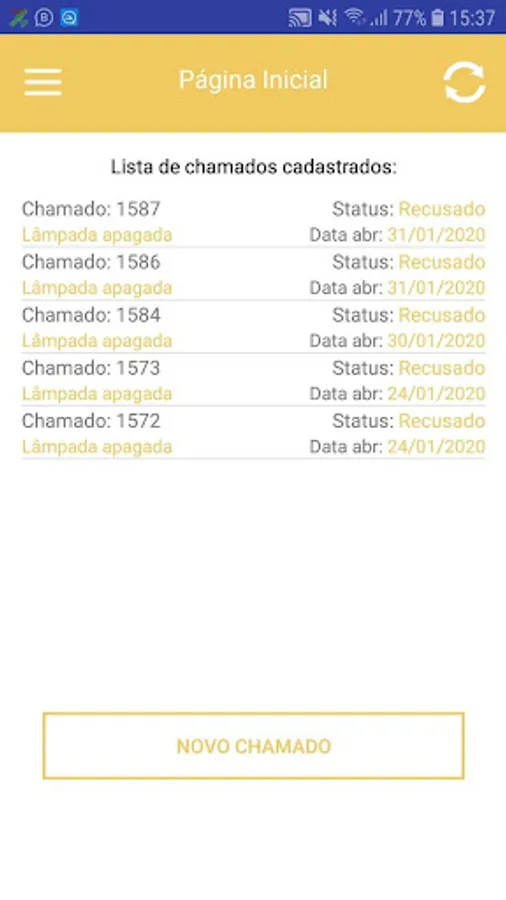 The user can open calls that deal with problems in the city's public lighting, informing the location, image and being able to inform more details such as bus, nameplate, reference point, among others.