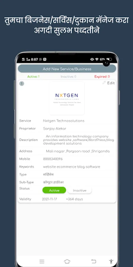 या ऐप मध्ये तुम्ही तुमचा व्यवसाय,सर्विस,उद्योग,दुकान किंवा कला(उदा. मेहंदी,मेकअप,नृत्य इ.) ची माहिती नोंदवून आपला बिझनेस वाढवू शकता. असंगठीत कामगार (उदा. वेल्डर,फिटर,सफाई कामगार, बांधकाम मजूर,कारागीर इ.) सुद्धा या ठिकाणी आपला व्यवसाय रजिस्टर करू शकतात.