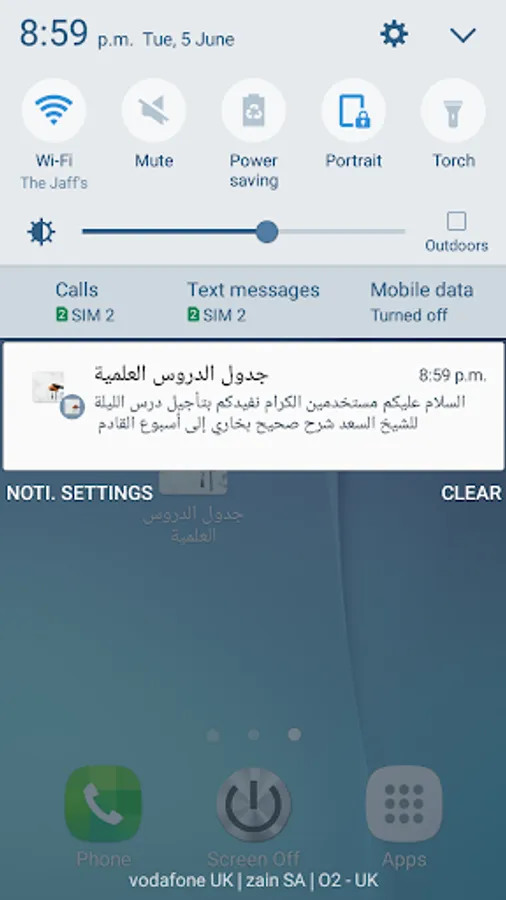 A notification is sent by the Director of the lessons from the application to all users, provided that the application is not deleted from the mobile user, the notification appears at the top mobile screen with full data lessons.