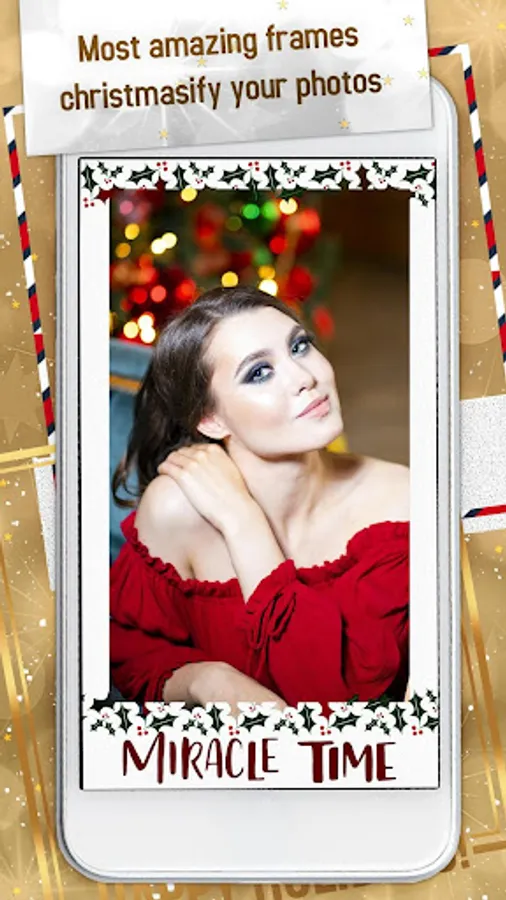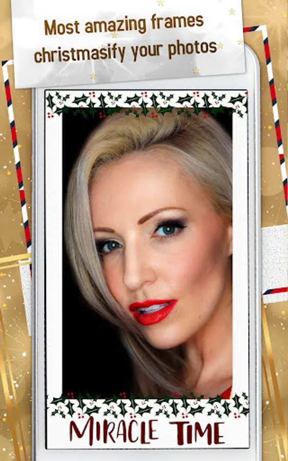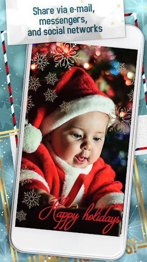 This holiday season create most beautiful greeting cards and picture collages with your own photos! Download “Christmas Greetings - Christmas Photo Card Maker” and start designing personalized photo cards with Christmas wishes and gorgeous holiday photo frames for your family and loved ones. Choose the best greeting cards maker with photo with cute card templates and designs and the best “greeting card photo editor” to personalize your Xmas greetings. How to make greeting cards step by step or a beautiful “Christmas photo collage”? With the most awesome “Christmas photo editor” it is so easy and fun! Get a variety of Christmas photo card backgrounds free and “create a greeting card” everyone will adore. Do something special and memorable! Add a touch of magic to your holiday greeting cards and collages with creative borders and frames for photos, text stickers for photos, cute merry Christmas stickers and picture frames.
