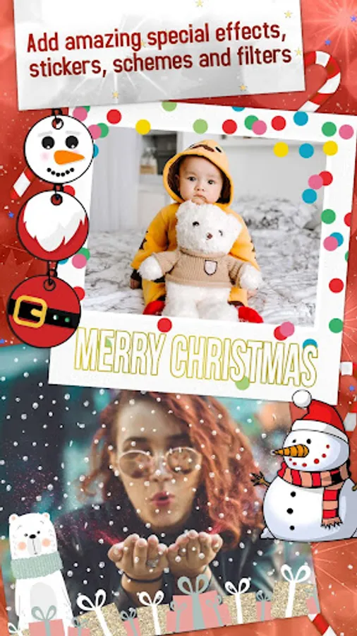 Create a holiday photo collage or a holiday ecard with the best Xmas photo editor and Xmas photo frame app.