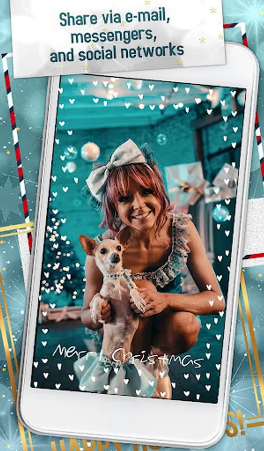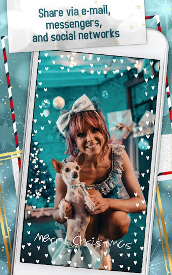 Get inspired by the most joyous and magical season and release your creativity! Send special Xmas messages and express your Xmas wishes with most awesome holiday greeting cards. Send delightful ecards with favorite holiday pictures, holiday wishes and greetings or bring a holiday picture card to life with the cutest stickers, Xmas elf, Santa, decorated tree. Download Christmas Greetings - Christmas Photo Card Maker and design the most special custom greeting cards for your loved ones.