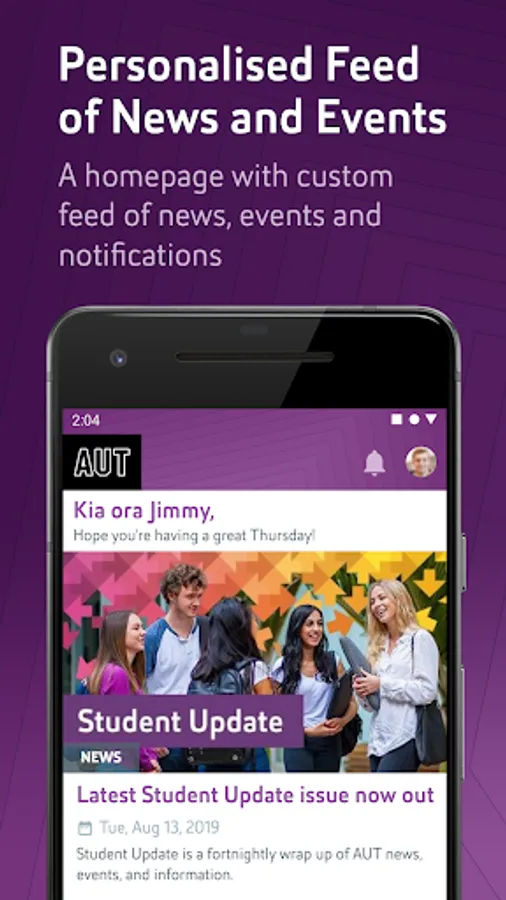 With the official AUT App, you have access to up-to-date news, events and information about AUT anytime, anywhere. New tools and functionality allow you to navigate student life at AUT both physically and virtually.