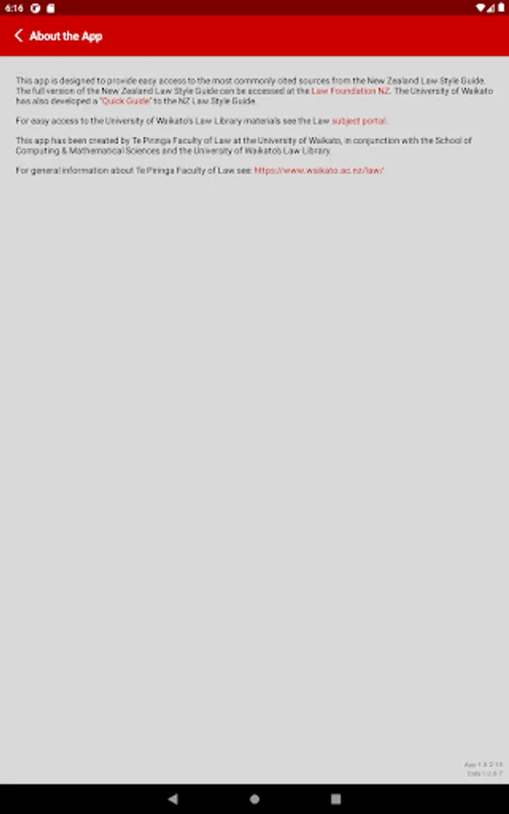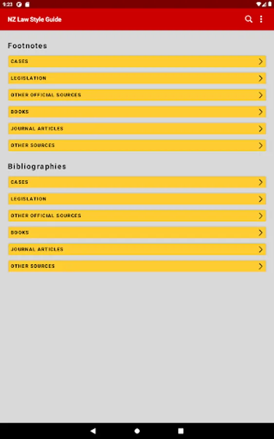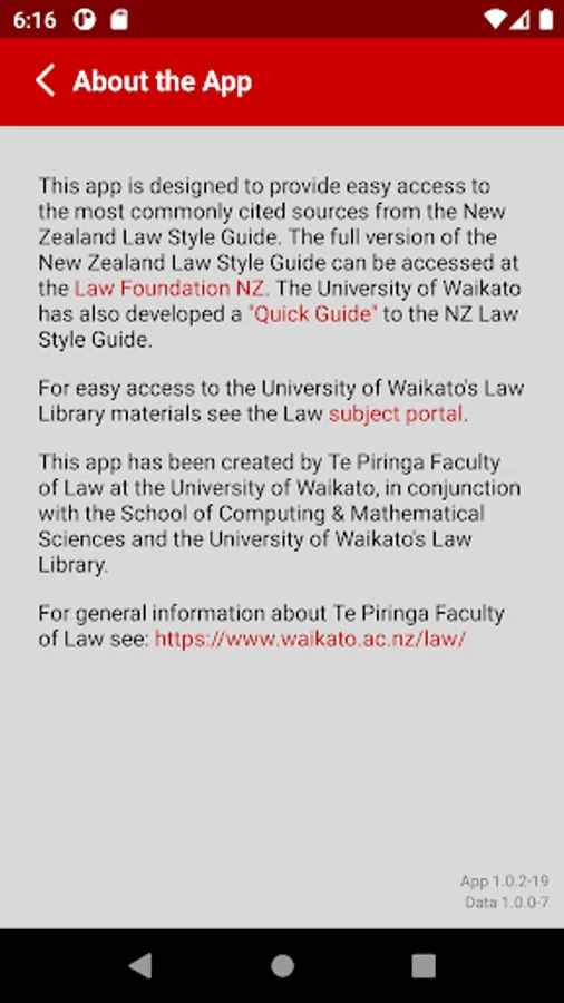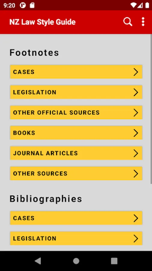 This app is designed to provide easy access to the most commonly cited sources from the New Zealand Law Style Guide. The full version of the NZ Law Style Guide can be accessed online at https://www.lawfoundation.org.nz/style-guide2019/