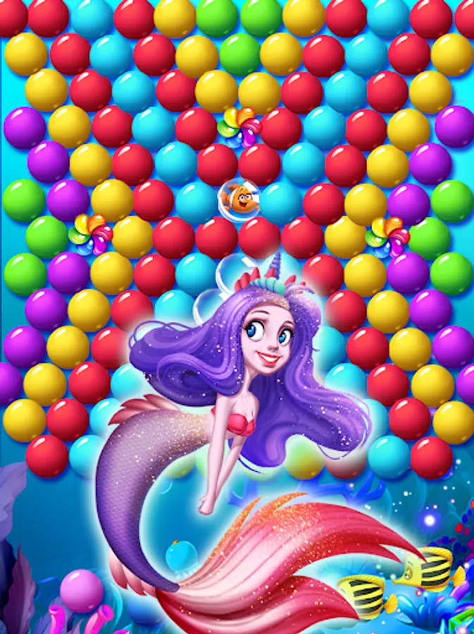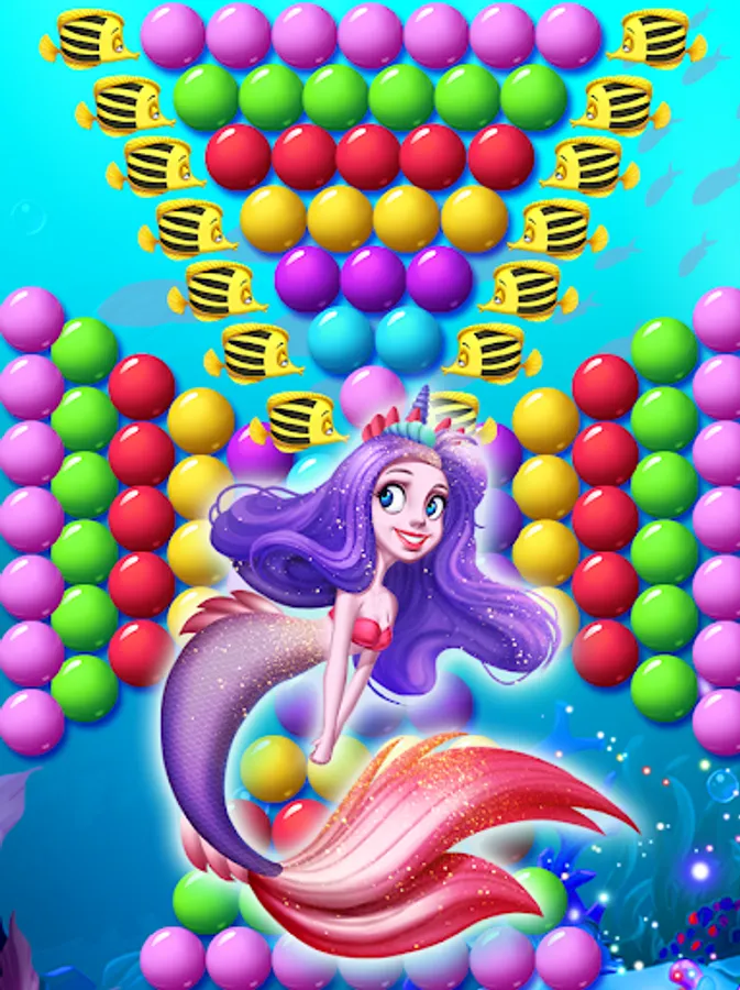 The mermaids have been trapped in giant bubbles! It's up to you to adventure through the sea and rescue them. Aim and bust through bubbles to rescue mermaids. Pop your way to the mermaids by matching your fish's color with two or more bubbles of the same color.