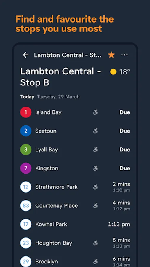 Find and favourite the stops you use most often, and see up to 24 hours of departures.