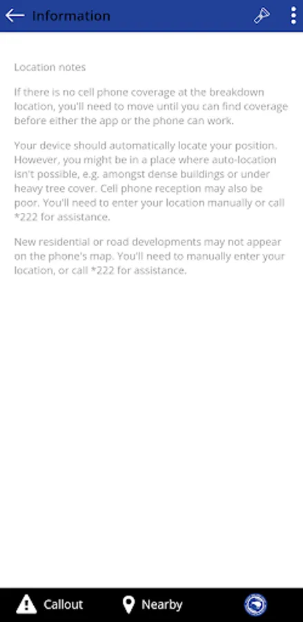 Once registered, the Police Welfare Fund Roadside Assistance app will automatically locate you with the phone’s GPS and allows you to tell AA service agents what help you need. There’s also a quick link to turn on the flash light, access through to our website, as well as a map showing local services.