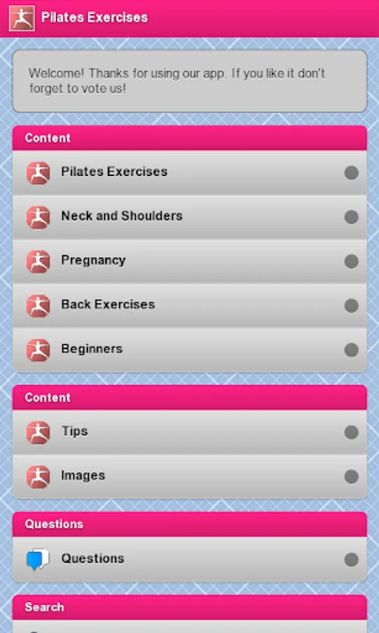 Do you want to practice Pilates? Are you interested in preventing and treat your back pain? With the app Pilates Exercises we will show you how to perform all Pilates exercises to strengthen the muscles surrounding the back, shoulders and neck and improve your flexibility, mental coordination and good posture. You will also find videos with Pilates exercises for pregnant women. And all this for free!