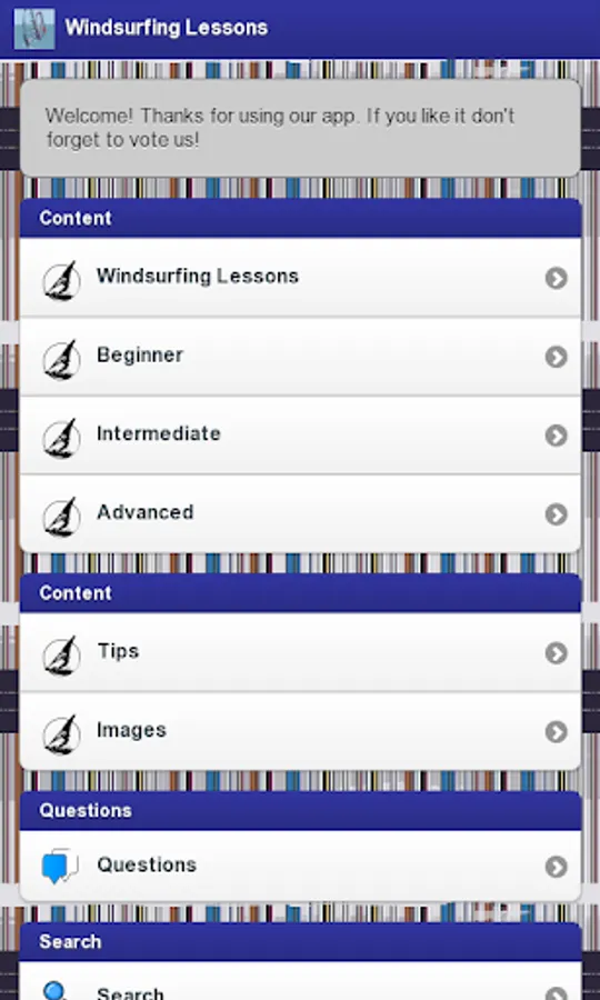 Do you like summer sports? Would you like to learn how to windsurfing in an easy and entertaining way? Would you like to improve your technique and become a professional windsurfer? With the app Windsurfing Lessons, you will learn everything you need to learn how to windsurfing and to improve your technique, with videos that will help you to correct your body position while you practice this sport. And all of this for free!